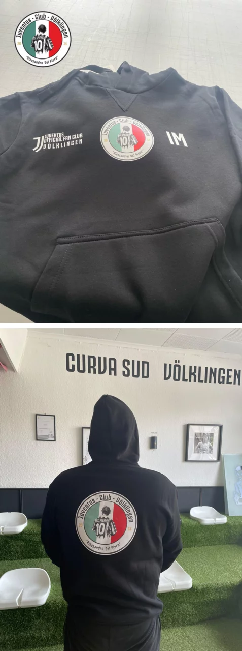 Unser offiziellerFanclub-Kapuzenpullover– jetzt erhältlich! Mit unserem Fanclub Logo, Del Piero-Motiv & deinem individuellen Kürzel.